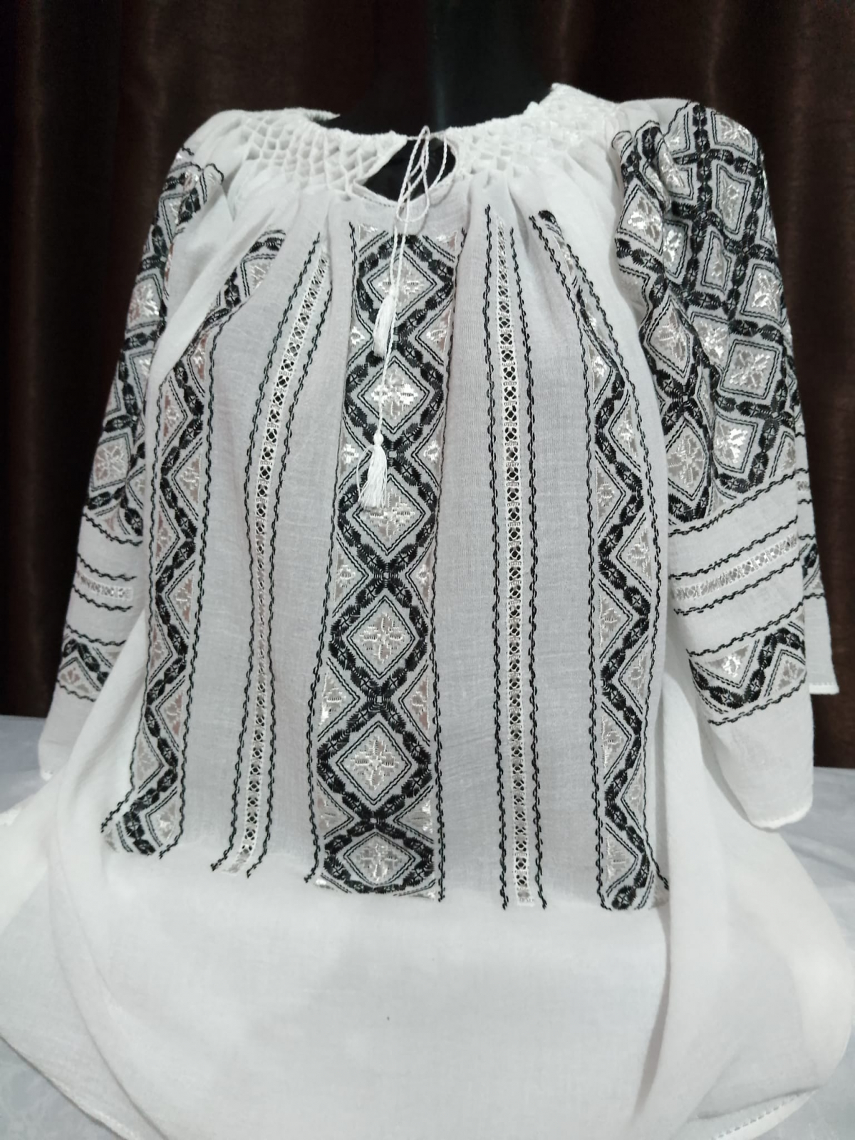 Ie traditionala brodata manual pe panza topita cu fir de matase